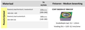CCMT 060204-EF YBM153F€65,30 Prijs is per 10 stuks. 0,4 radius. Geschikt voor fijn bewerking in roestvrijstaal. CCMT 060204-EF YBM153F aantal Toevoegen aan winkelwagen Artikelnummer: CCMT 060204-EF YBM153F Categorie: Positieve wisselplaten draaien Beschrijving Gerelateerde producten CCGX 060204-LH YBG102 €87,60 Prijs is per 10 stuks. 0,4 radius. Geschikt voor fijn bewerking in no-ferro, rvs en hitte bestendige materialen. Toevoegen aan winkelwagen CCMT 120408-EF YBG205 €92,50 Prijs is per 10 stuks. 0,8 radius. Geschikt voor fijn bewerking in roestvrijstaal. Toevoegen aan winkelwagen CCGX 120408-LH YBG102 €106,50 Prijs is per 10 stuks. 0,8 radius. Geschikt voor fijn bewerking in no-ferro, rvs en hitte bestendige materialen. Toevoegen aan winkelwagen DCMT 11T308-EM YBM253F €86,70 Prijs is per 10 stuks. 0,8 radius. Geschikt voor medium bewerking in roestvrijstaal. Toevoegen aan winkelwagen